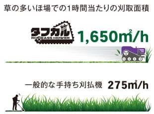 (機体条件)車速:高速、刈高さ:中。自社調べ