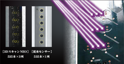 535本のセンサーラインに加え、3列同時発光の広角型センサーラインを搭載。