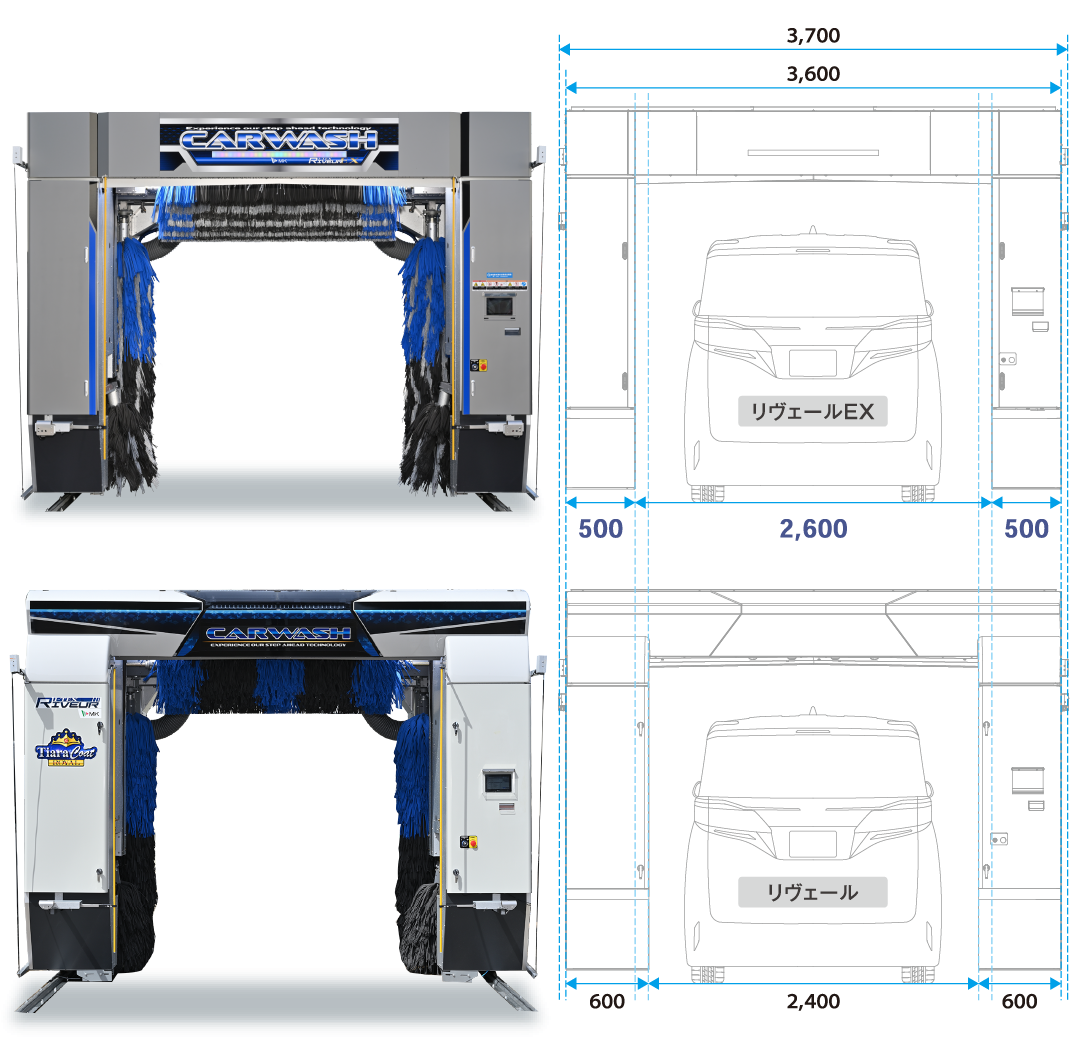 POINT① 洗車機外寸は変えずに間口2,600mmを実現。