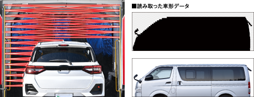 3方向に交差するビームセンサーで、緻密に車形を認識。