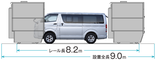 レール長8.2mの小さな設置面積で、最大5mのボディサイズまで洗車可能。