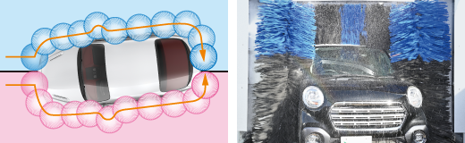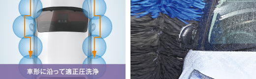 左右のブラシを別々にコントロールし、ボディ側面を最適距離でブラッシング。