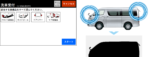 当社最上位機種と同等の「装備品自動認識機能」を標準搭載し、選択忘れを最小限に抑え、どなたでも安心・確実に洗車できます。
