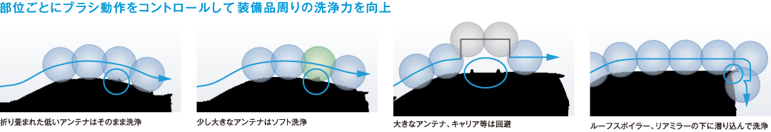 左右のブラシを別々にコントロールし、ボディ側面を最適距離でブラッシング。